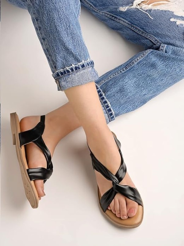Shoetopia Cross Strap Flat Sandals For Women & Girls