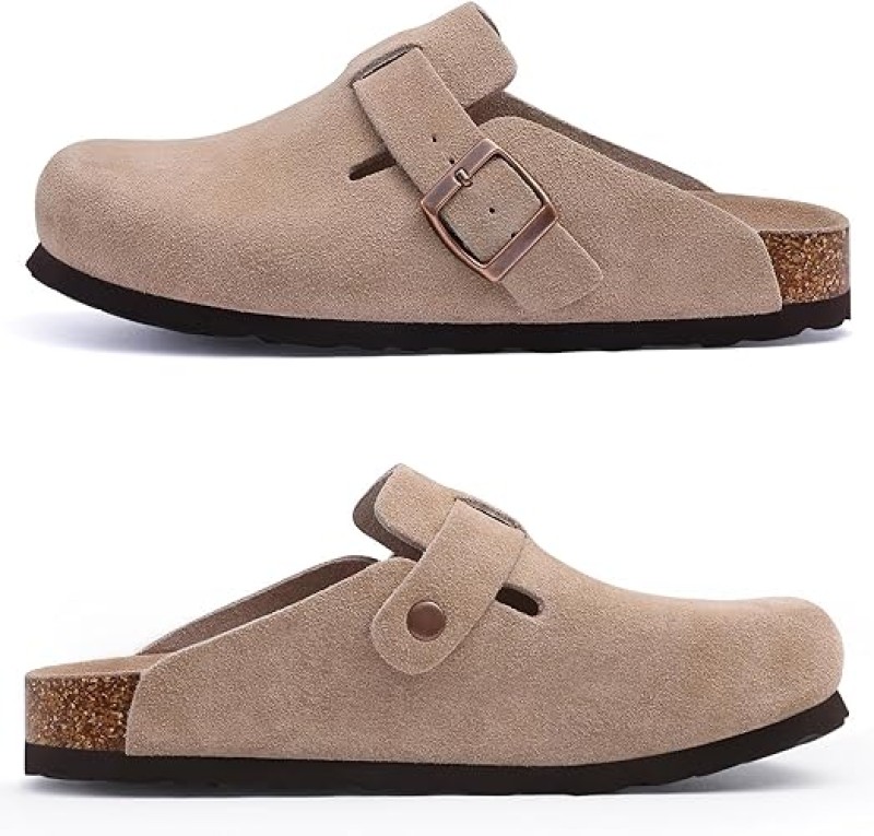 Suede Clogs Leather Mules Arch Support Potato Shoes with Comfort Cork Footbed